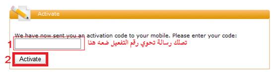 ثم تصلك رسالة على رقم جوالك الذي سجلته تحوي الرسالة على كود التفعيل ويكون نص الرسالة
