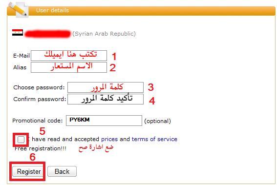 ثم ادخل معلوماتك كالتالي :