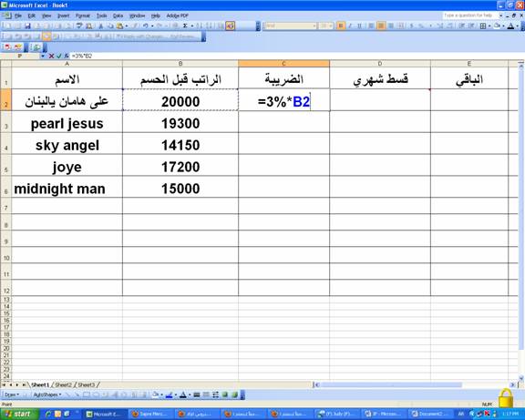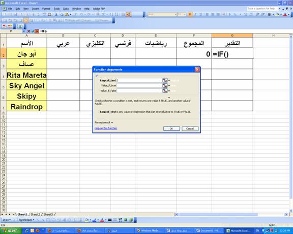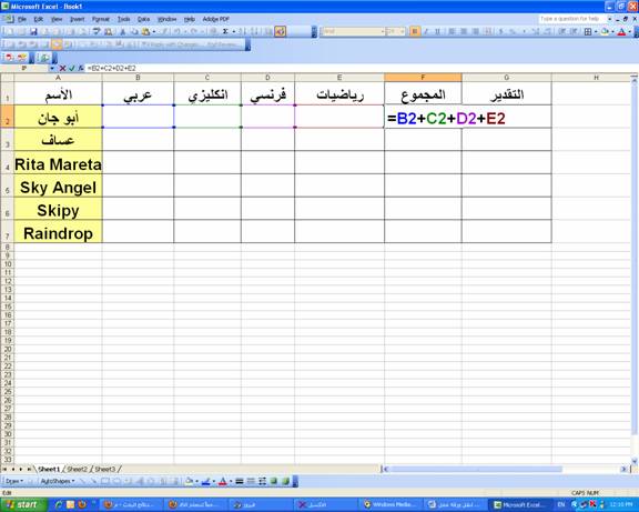 ا- اقف في الخلية الي بدي النتيجة تظهر فيها