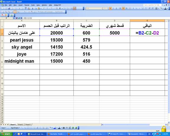هدا مثال بسيط لامكانية ايجاد ناتج جمع او ضرب او قسمة او طرح اي خليتين في المكان الي بدنايه