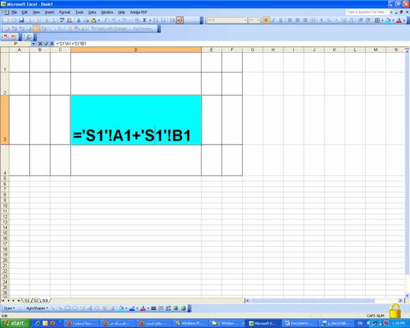 = وأنتقل بالماوس الى الصفحة s1 وأحدد الخلية a1
