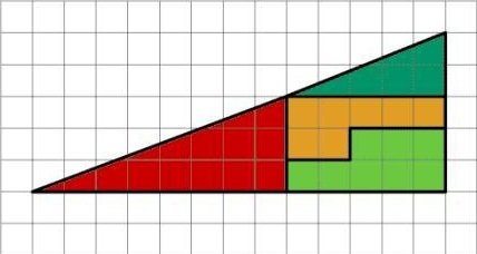 يعني المربع الأبيض ظهر نتيجة فرق مساحة المثلث عن مجموع مساحات الأشكال المكونة له، لذلك هوي ما ظهر بالترتيب الأول للأشكال وإنما ظهر لما اختلف ترتيب الاشكال