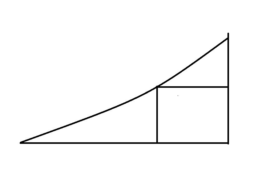 يعني في 0.5 وحدة مربعة فرق مساحة، وبالتالي وتر المثلث هو قوس منحني