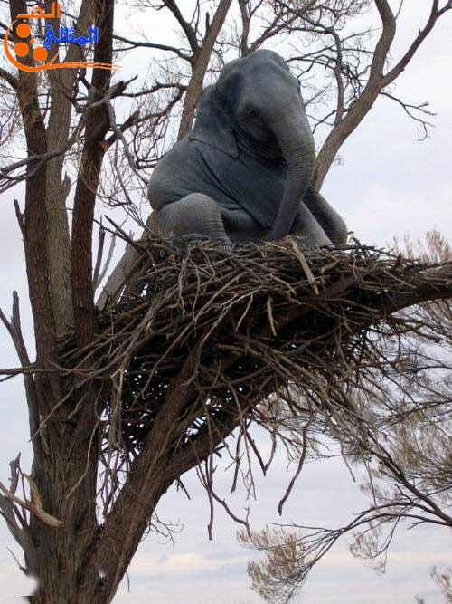 يمكن هاد الفيل جاي عبالو يجرب حياة العصافير