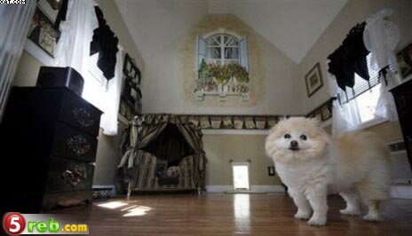 الجدران والستائر المصنوعة باليد، كما أن القصر يحتوي على أسرّة خاصة بالكلاب
