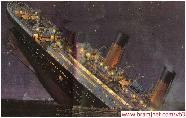 بجبل جليدي مما أدى إلى خرقها و بالتالي غرقها فى المياه