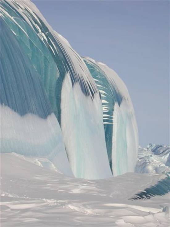 هي صور لموجة في انتارتكا متجمدة
