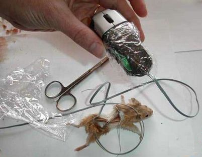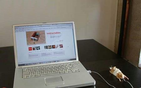 رجل فرنسي يستخدم فارة حقيقيه للكمبيوتر‎