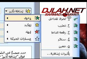 بالامكان اختيار ما نريد من هذه الحركات التي ظهرت وبالامكان ان نضغط على تأثيرات اضافية و اختيار حركة أخرى