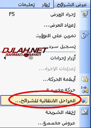 بعد ذلك نعود الى عرض الشرائح .. و نضغط على المراحل الانتقالية للشرائح