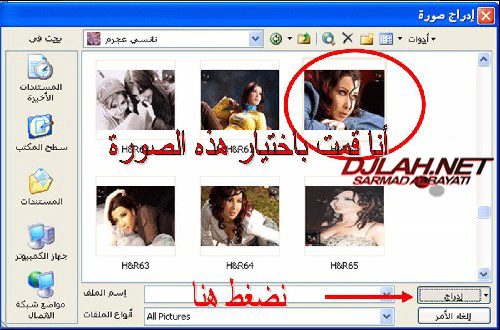 بعد ذلك نقوم بتحديد مكان الصورة من الجهاز و نضغط ادراج