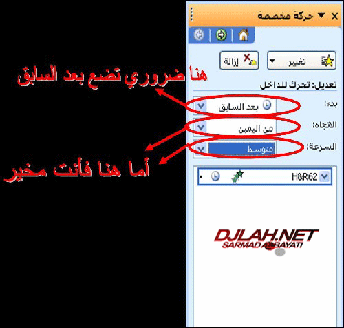 نقوم الان باختيار .. عرض الشرائح ... حركة مخصصة ... توكيد