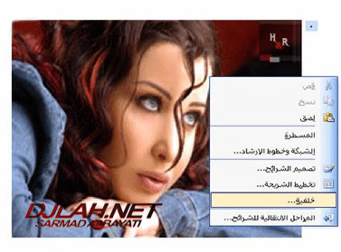 اضغط من الماوس زر يمين على الشريحة البيضاء وقم باختيار خلفية كما في الصوره