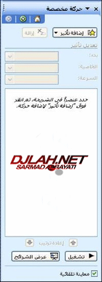 نقوم بعد ذلك بالضغط من فوق على عرض الشرائح و نختار منها حركة مخصصة ... كما في الصوره