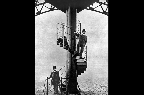وفي الصورة المهندس ايفل وهو يتفحص البرج