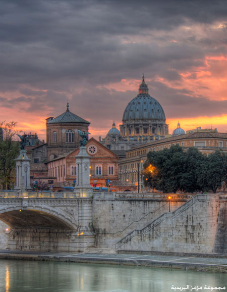 ضوء سماوي أعلي كاتدرائية القديس بطرس و نهر تايبر.