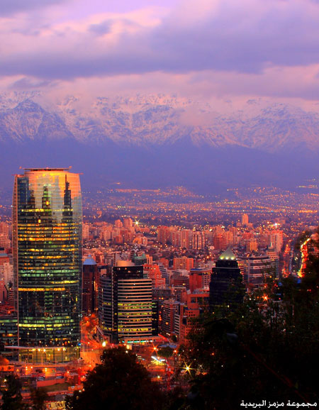 تل سان كريستوبال، سانتياجو لحظة غروب الشمس في فصل الشتاء.