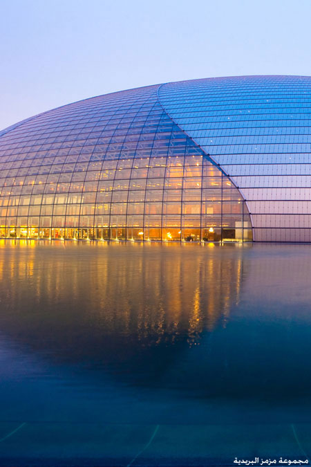 إنعكاس ضوء الشمس علي المسرح الوطني الكبير في بكين.