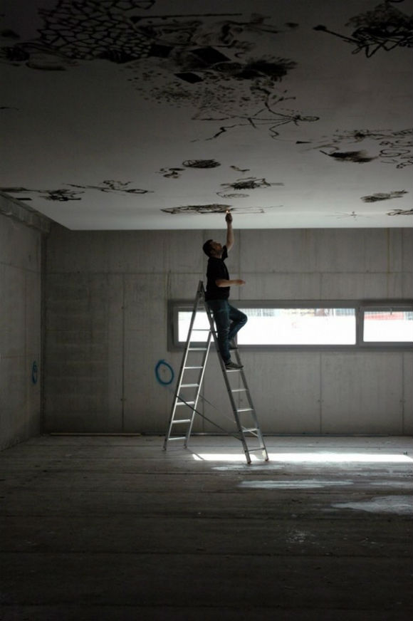 الفنان الفرنسي أوليفر كوستا “Oliver Kosta” يلعب حرفياً وباستمرار بالنار، مستخدماً بذلك أخف الطرق والأكثر غرابة لرسم التصاميم وذلك بحرق الأسقف باستخدام ولاعة السجائر :