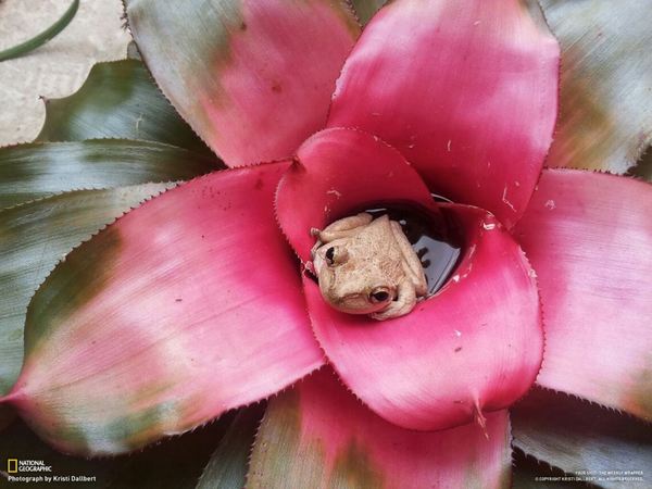 ضفدع داخل أحد الزهور الاستوائية