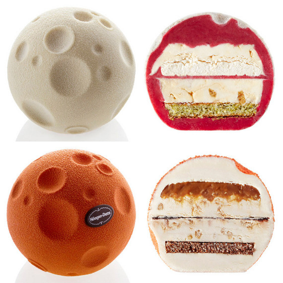 صورة لذيذة لكعكة مثلجات القمر، تم صنعها من شركة هاجن داز و تصميمها عن طريق وكالة التصميم دوشي البريطانية . ( تبدو لذيذة جداً أيس كذلك )