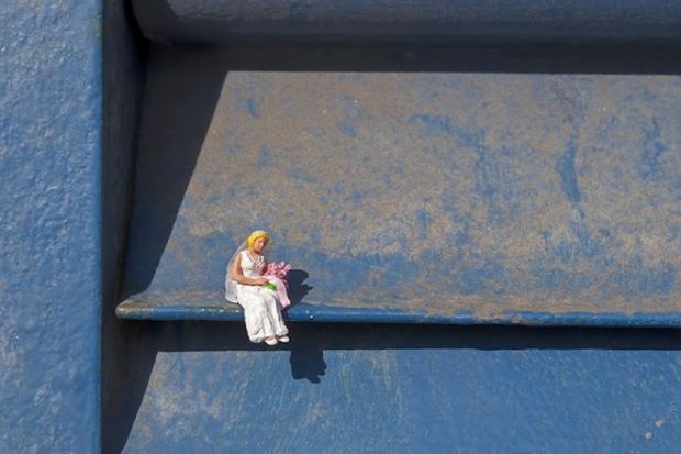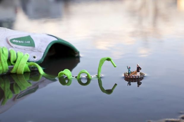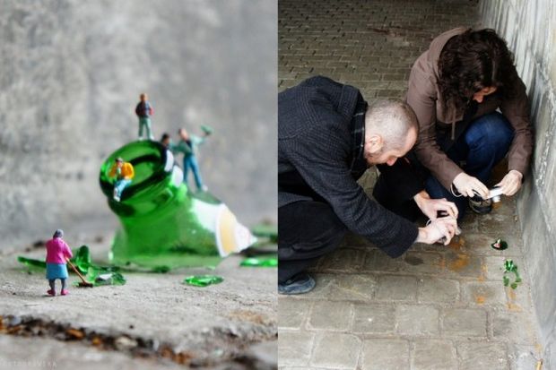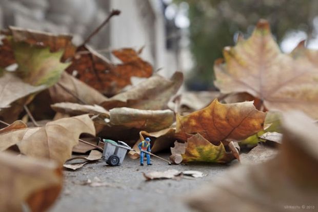 هذه الأعمال المبهمة و الغامضة قدمها فنان عاش حياته كذلك، الفنان هو “سلنكاتشو \ Slinkachu” وقد انتقل للعيش في لندن عام 2002 ولا يوجد المزيد من التفاصيل عن حياته الخاصة و لعل هذه الحياة المأساوية كانت وراء هذا الابداع الذي يحمل رسالة انسانية هامة. يجسد هذا الفنان في أعماله مشاكل عامة تواجه سكان المدن و يريد من خلال حجم أعماله المصغرة أن يقول أن مثل هذه المشاكل يمكن تجاهلها بكل سهولة اذا ما استمر الأشخاص بالانشغال في أمورهم الخاصة فقط دون الالتفات الى غيرهم، من أجمل أعمال هذا الفنان (الصور على اليسار للأعمال عن قرب و على اليمين من بعيد)..