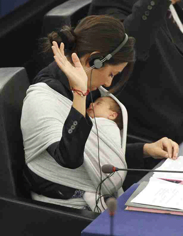 مازالت النائبة رونزوليا تصطحب ابنتها فكتوريا الى البرلمان خلال حضورها الجلسات بستراسبورغ، وذلك رغم بلوغ فيكتوريا 18 شهراً