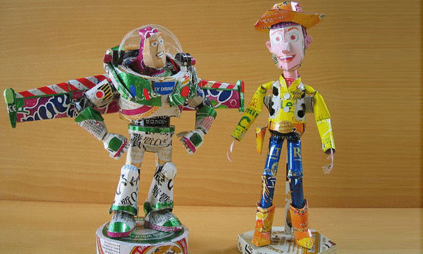 لفت الفنان الياباني "ماكون" الأنظار له بعد قيامه بصنع تماثيل لشخصيات وأبطال لأفلام الكرتون والقصص المصورة من صفائح معلبات مشروبات الصودا فقط.