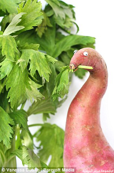 قضى الشاب البرازيلي “فانيسا دوليب – Vanessa Dualib” والبالغ من العمر 32 عام، أكثر من 4 سنوات في إلتقاط مجموعة من الصور الرائعة لخضروات قام بتحويلها إلى مجسمات على هيئة حيوانات، فهو يشكلها بحيث تخرج بهيئات عديدة منها فيل، وزرافة، وديناصور، ثعبان، حيث تبدو إلى كل من ينظر إليها في الوهلة الأولي إنها ليست مصنوعة من الخضروات.