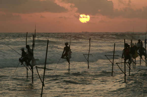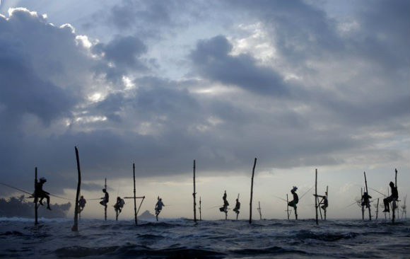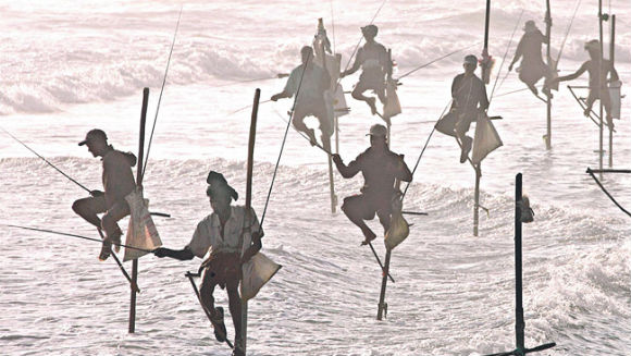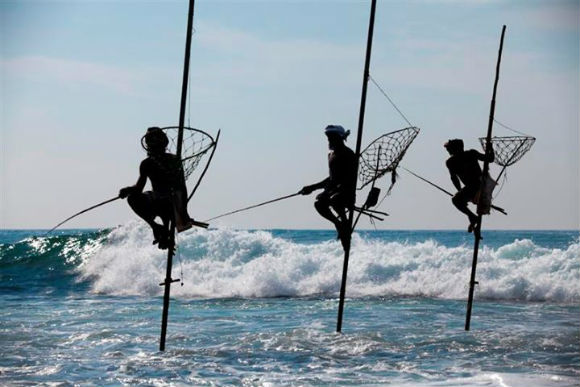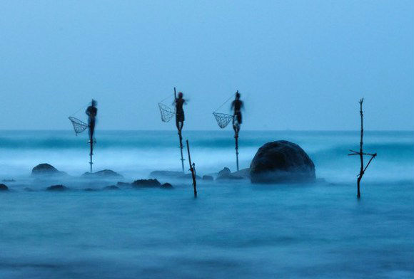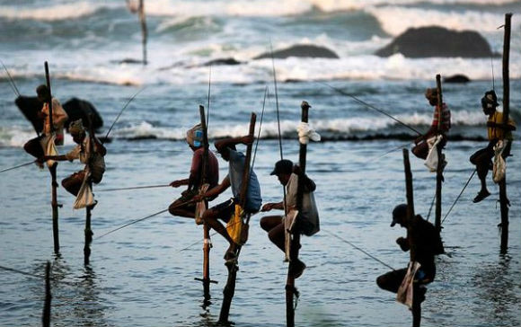 تراها فتخالها لوحة رسمت بريشة فنان، واحدة من أكثر المشاهد إبداعاً في صيد الاسماك، تقليد قديم في جميع أنحاء سريلانكا، حيث تراهم يجلسون لساعاتٍ على ركائز غير مريحة على أمل أن يصطادون شيئاً.
