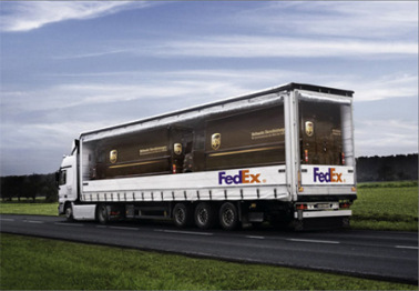 شركة نقل عالمية ذات شهرة واسعة تقوم في هذه الدعاية بالإستهزاء من إحدى منافسيها، شركة UPS.