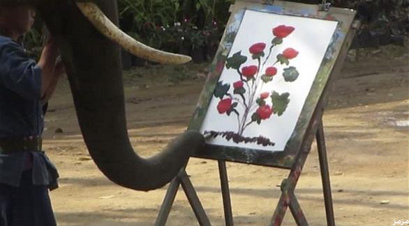 رد: فيل من تايلند يرسم لوحات فنية غاية في الدقة و جمال