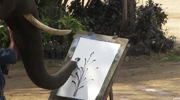 • فيل من تايلند يرسم لوحات فنية غاية في الدقة و جمال