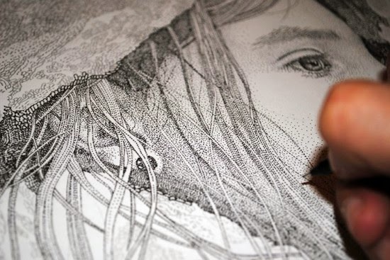 الرسومات التالية هى رسومات من صنع الفنان بابلو رويز خورادو ، وقد صنع الفنان هذة الصور المفصلة بشكل لا يصدق بإضافة الآلاف من نقاط الحبر الصغيرة إلى قماش بيضاء . ولد بابلو رويز خورادو في عام 1973، في ملقة، إسبانيا، وقد احترف الرسم في سن مبكرة جدا، . يستخدم الفنان الاسباني عدد لا يحصى من نقاط سوداء على قطعة من الورق الأبيض لخلق أعمال فنية مذهلة مستوحاة من موضوعاته المفضلة: الحب، وخيبة الأمل، والطبيعة والطفولة.