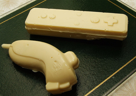 تصميم من الشوكولا يحاكي ذراع التحكم لجهاز الألعاب Wii.