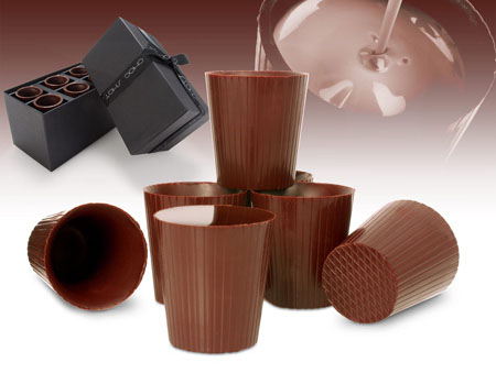 مجموعة من الأكواب الصغيرة المصنوعة من الشوكولا.