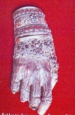 لانو اللي اعرفه انو يد القديس اغريغوريوس محفوظة في جلوفز من ذهب والصورة اللي جبيتها بحبك فيروز مش جلوفز دهب