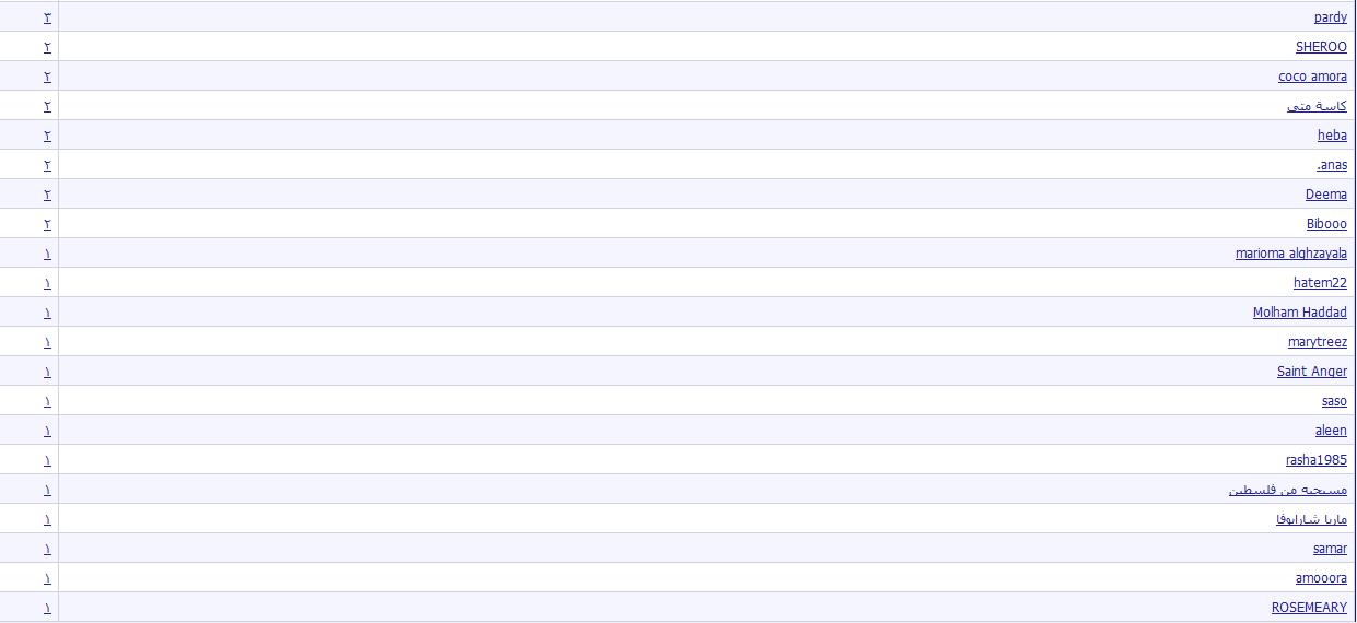 و هلق رح حط متل استبيان ع العالم يلي شاركت بالموضوع و شكر كبير الها و الحلو انو جمعت اسماء كتير ما عدنا شفناها و عالم كانو من القدامى و كمان عالم من الجدد
