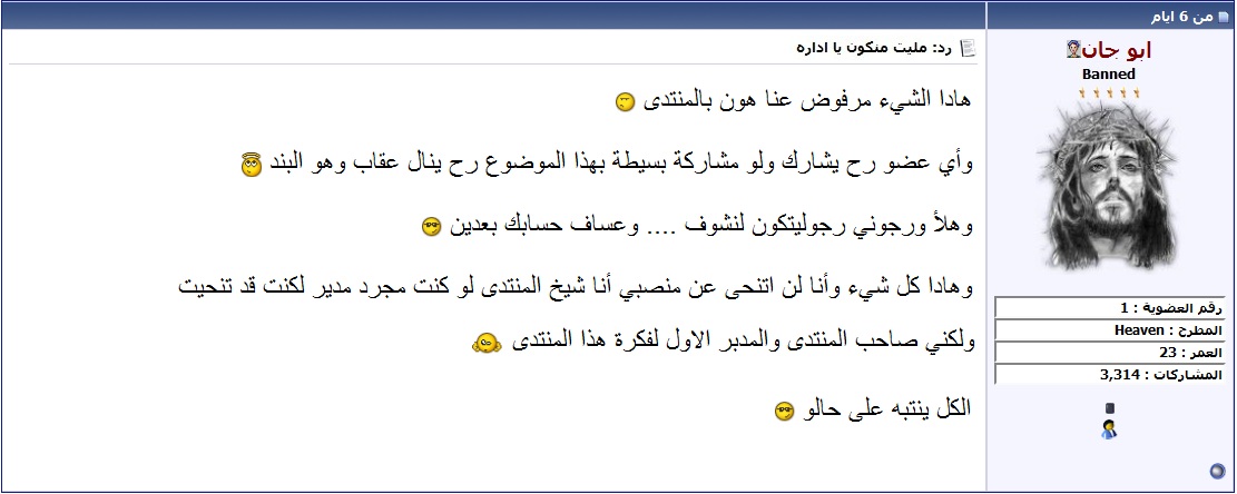 وقد تم بند الشيخ مجد بسبب رده على هذا الموضوع فقام الطاقم صاحب السلطة الاقوى بالمنتدى بحزف الرد