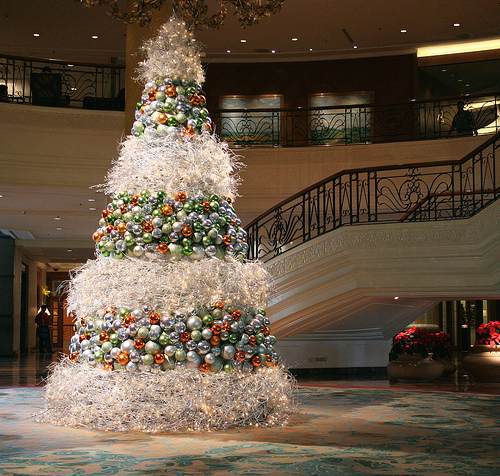 شجرة الميلاد بزينتها وبأضوائها الملونة