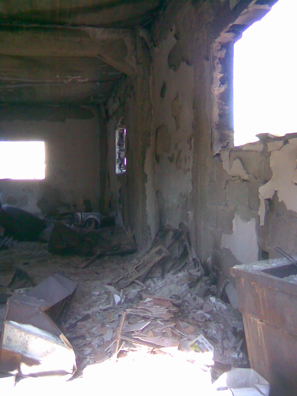 وماكان فينا نقعد جنب الشبابيك من كتر الضرب والقصف من جمييع الجهات حرب عنيفه ونحنا بالبيت والولاد الصغار يبكو والنسوان صار معن انهيار عصبي والرجال كانو يخاطرو بحالن ويطبخولنا علحطب برا رغم القصف